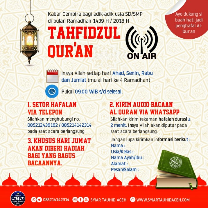 Kabar Gembira bagi adik-adik usia SD/SMP di bulan Ramadhan 1439 H / 2018 H TAHFIZHUL QUR'AN ON AIR Insya Allah...